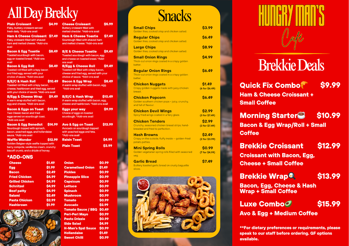 Welcome to Hungry Man's Café, a delightful new gem nestled in the heart of Adelaide at 1/288 Waymouth St. This café has quickly garnered a reputation as the go-to spot for locals seeking delicious fare served with a side of friendly service. With their inviting atmosphere and extensive menu, it's hard to resist the allure of this café — especially for those passionate about breakfast and comfort food.